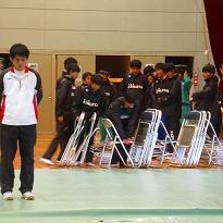 ●生徒会役員が中心に、1年、2年のバスケットボール部、バレーボール部、サッカー部、ソフトテニス部などが、会場作りに協力してくれました。