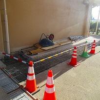 (体育館への通路 舗装工事中) (東小との廊下部分の工事開始)