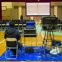 ●新役員が中心となり、式の中で新たな試み「スライドショー」もあり、3年は時折歓声が上がっていました。