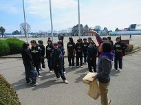 ●大きな花束を持った榎本先生を囲んで、卒業生や親の会のお母さん方も入って国旗掲揚塔前で記念撮影を行いました。のちほど、写真を掲載します。