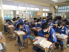 「走れメロス」の教材文で、濁流の場面を読んで表現の工夫についてグループで話し合ってまとめていました。話合いが効率的に進められていました。