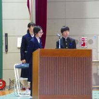 ●学年ごとの欠席者数・・・1年 3名(病気等3)遅刻2 出席停止3(インフルエンザ3) 2年 4名(病気等3通級1) 3年 4名(病気等3通級1) 出席停止5(インフルエンザ2 受験3) 職員 1名(特休1) でした。