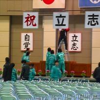 〇立志式の会場準備・・・・・・⑥校時、1年が会場準備と校舎、体育館まわりの清掃を行いました。