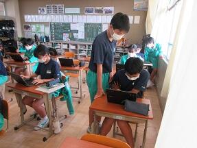 助詞の分類について理解を深め、その後にタブレットを使いドリル学習をしていました。タブレットのドリル学習もなかなか効果的だと感じました。