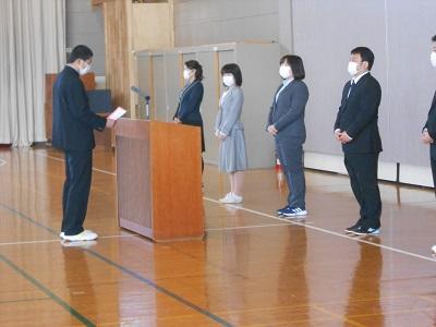久しぶりに生徒が登校し、学校が蘇ったように感じました。やはり生徒がいての学校だとつくづく感じました。今日は新しく赴任した先生方との「新任式」と「始業式」が行われ、2・3年生は新たな学年で期待と希望を誓い合っていました。