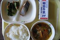(今日の給食 和風3品) (風もある中で青空でした)