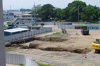 (東小新築工事 校舎の建設位置を掘っています)