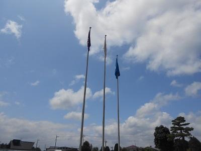 国旗・町旗・校旗が太陽に照らされ、生徒の活躍を確認しています。