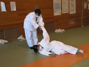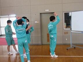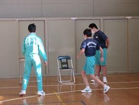 柔道の受け身を、2人組で低い位置からまわってやっていました。だんだん畳みを打ついい音になってきました。