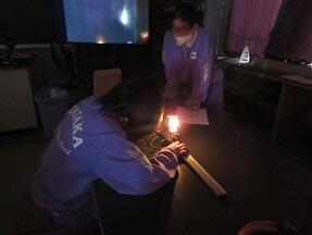 凸レンズの見え方の実験をやっていました。どのグループも正しい結果が得られているようでsた。