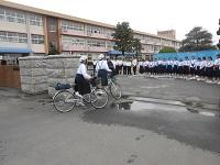 今日も昨日に引き続き、朝のあいさつ運動が行われました。今日は「テニス部女子」と「サッカー部」です。