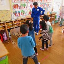 (手作りおもちゃで園児と遊びました)