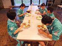 調理活動では、班員どうし楽しく調理し、1時間半ほどでカレーライスを作り上げました。ご飯の炊き方もカレーも大きな失敗をする班はありませんでした。自分の役割をしっかりと果たしたり、友だちを手伝ったりと大変立派な姿が見られました。