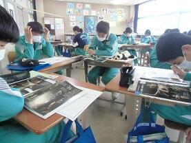 動詞の過去形と新出単語の学習を少人数学級で実施していました。