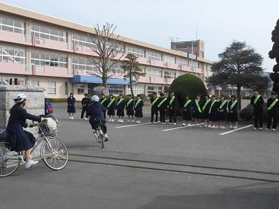 【あいさつ運動】 評議委員が本日からあいさつ運動を開始しました。年間を通して、毎週水曜日にクラスや部活動ごとに校門付近に立ち、「さわやかなあいさつ」を行います。朝から笑顔で通じ合う生徒の育成に生徒自ら取り組んでいます。