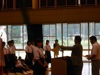 校長の話では、地区総体での真剣で最後まであきらめない取り組みに賞賛と感謝をするとともに、3年生には今後新たな目標に向かって、部活動で鍛えた「精神力」と「体力」を生かしてほしいとお願いしました。また、1・2年生には地区新人大会に向けて、3年生から学んだことをさらに精進してほしいと伝えました。さらに、これからの生活について、急激な天候の状況に応じた対応と東小の児童との交流・連携をお話しさせていただきました。最後に、3年生に転校生(男子生徒)が来たことを紹介しました。