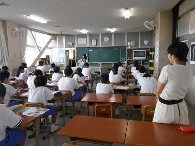 教室の覗いてみると、1年生の数学、美術を行っていました。教室にはエアコンがついているのですが、美術室には残念ながらエアコンがありません。(´・ω・`)