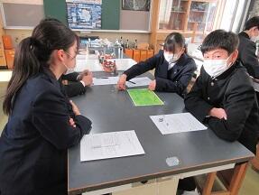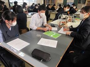 食ったり食われたりすることで、食物連鎖のピラミッドの形はどうなるかのシミュレーションをしていました。どのグループも協力して進めていました。
