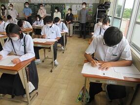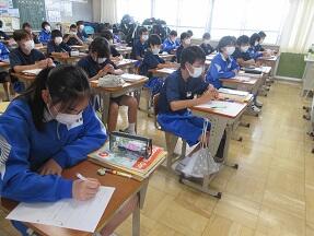 中間テストを返却して、ふりかえりを実施していました。