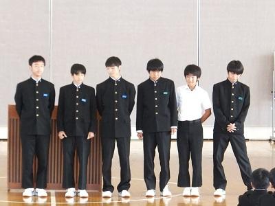 【朝会の様子】 英語スピーチ出場者(2年代表)