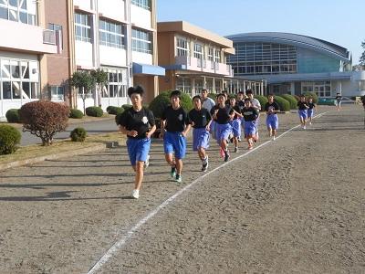 【朝の様子】 ペース走です。集団で走ると力がつきます。