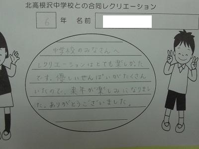 【校内散策】 東小学校から7月2日に行った「合同レクリエーション」の感想が書いてある掲示物をいただきました。みんな「楽しかった」と書いてくれました。また、実施しましょう。