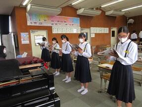 「夢の世界」の歌唱の練習をしていました。久しぶりに生徒たちの歌声を聞いた気がして、とても気持ちよくなりました。