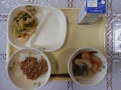 【給食メニュー】納豆、かんぴょうごま酢和え、おでんでした。おでんはとても煮込んであり、柔らかく美味しかったです。