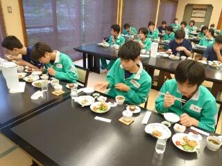 1日目の夕食です。昼食が早かったので、お腹がすいているようでみんなとてもおいしそうに食べています。
