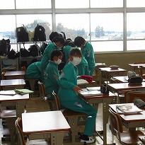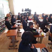●学年ごとの欠席者数・・・1年 2名(病気等2) 早退1 出席停止2(インフルエンザ2) 2年 3名(病気2通級1)早退1 3年 3名(病気等2通級1)遅刻1 出席停止2(受験2) 職員 0名 でした。