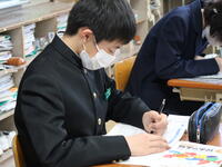 1年2組「学級活動」進級までの「カレンダー」を作成していました。2年生になるとクラス替えがあります。今のクラスの思い出を大切にしてほしいです。