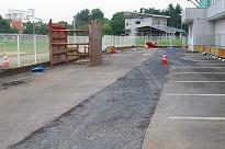 (体育館と校舎の間 合同浄化槽の工事が行われています)