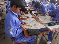2年1組「美術」額縁の彫刻です。細かな作業で集中していました。