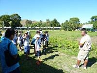 午後は、フィジーに唯一の「国立植物公園」を訪れ、国家遺産である砂丘群を見学しました。この砂の壁をフィジーのラグビー選手は練習で活用するようです。我々も挑戦しようとしたのですが、砂の温度が高く、危険とのことで断念しました。一行は16:30、本日の研修を終えて、ホテルに戻りました。