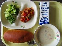 (今日の給食 大きいハンバーグ) (お昼頃の空のようす)