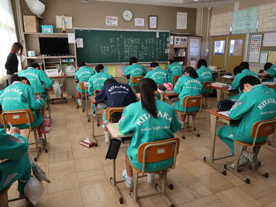 1年2組「社会」高校入試問題に取り組んでいました。1年生でも出来る問題はたくさんありました。
