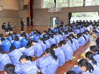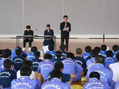 【生徒総会】 本年度の生徒会活動の計画や予算案について検討しました。全員が真剣に説明を聞き、質問もたくさん出ていました。最後に生徒会長から今年度の生徒会スローガン「We can do it」 ~新たな一歩を踏み出すために~が発表されました。