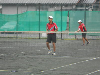 本日、本校及び矢板中で開催予定の「女子ソフトテニス」はコートの状況が悪いために来週に延期となりました。町民広場では「男子ソフトテニス」は開催され、本校と阿久津中の生徒が対戦していました。小雨の中でしたが、最後のゲームを楽しんでいました。