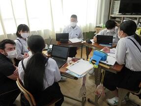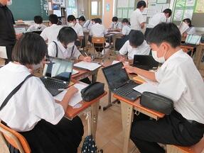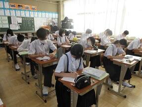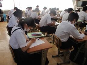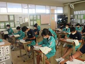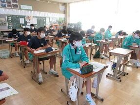 葉の作りと働きについてまとめをしていました。理科の授業は今週から、どうしても必要な実験は感染対策を十分にとってグループで実施することにしました。
