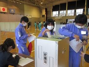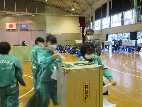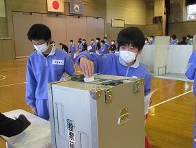 今日の5校時に、生徒会役員選挙立会演説会が行われました。立候補者はみんな堂々と自分の主張を述べていました。その後投票が行われました。