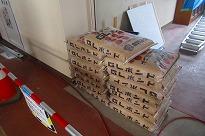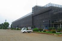(大規模改修工事 いたるところに工事グッズが置かれています)