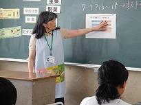 〇食指導・・・・・・今日の給食時、町学校給食センター栄養教諭の水井 浩子先生が来校し1年1組で「食に関する講話」をしていただきました。