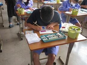 ポスターカラーの彩色で、グラデーションでの彩色に挑戦していました。2回目なのでずいぶん上手なってきています。