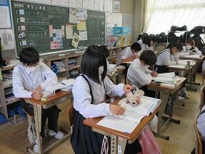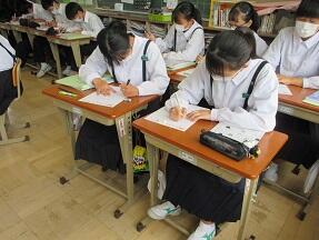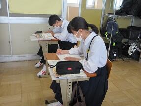 中間テストに向けて、「因数分解」、「式の計算の利用」の単元プリントを使って復習をしていました。
