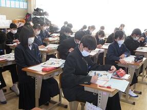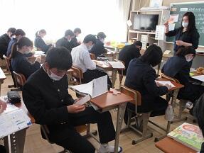 グループで6大陸や3海洋の位置について地図で確認し、説明する文を書いていました。どのグループも意欲的に取り組んでいました。