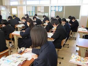 5句の俳句の季語や内容を確認していました。とても落ち着いた雰囲気で授業が展開されていました。