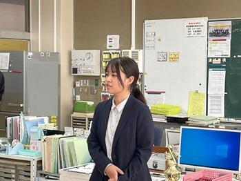 本日をもって1人の実習生が教育実習を終了します。2週間の間、主に1年生の社会科を担当し、途中、いくつかの大きな学校行事もお手伝いいただきました。是非、この経験を今後の教職で活かしてほしいです。お疲れさまでした。もう一人の方は、11月15日まで継続します。頑張ってください!