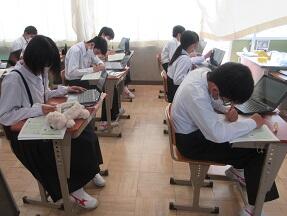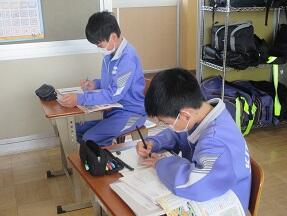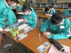 「1枚のハガキに想いを込めて」の学習で、下描きが終わった順に着色に取りかかっていました。