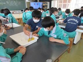 塩酸の電気分解に実験の事前の準備をしていました。次の時間が実験なので、ぜひ見に行きたいと思いました。