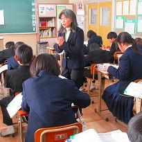 〇栄養指導・・・・・・今日の①②校時、1年2組家庭科の時間に給食センターの水井栄養教諭が来校し、栄養指導を兼ねて授業を行っていただきました。